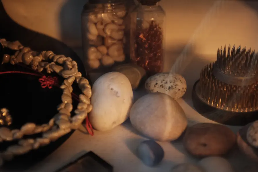 discussing techniques, listening to music, looking at the items they have sitting